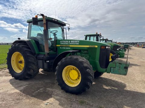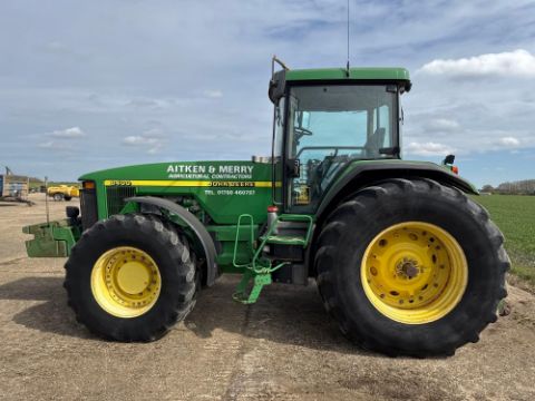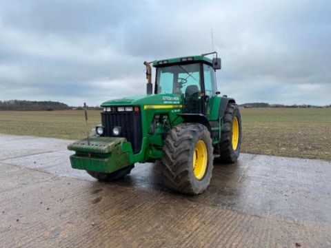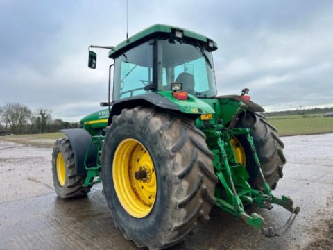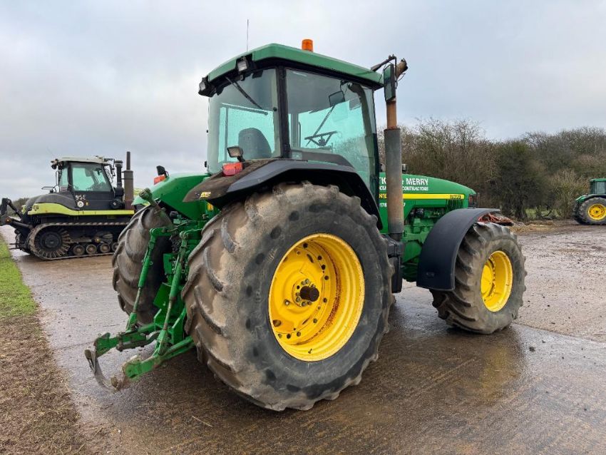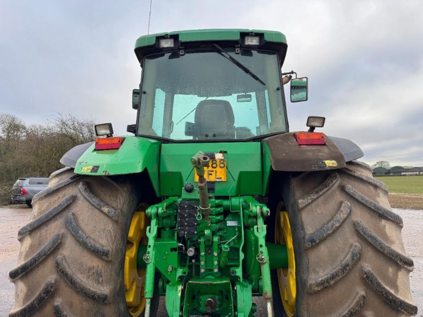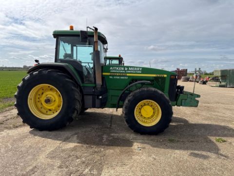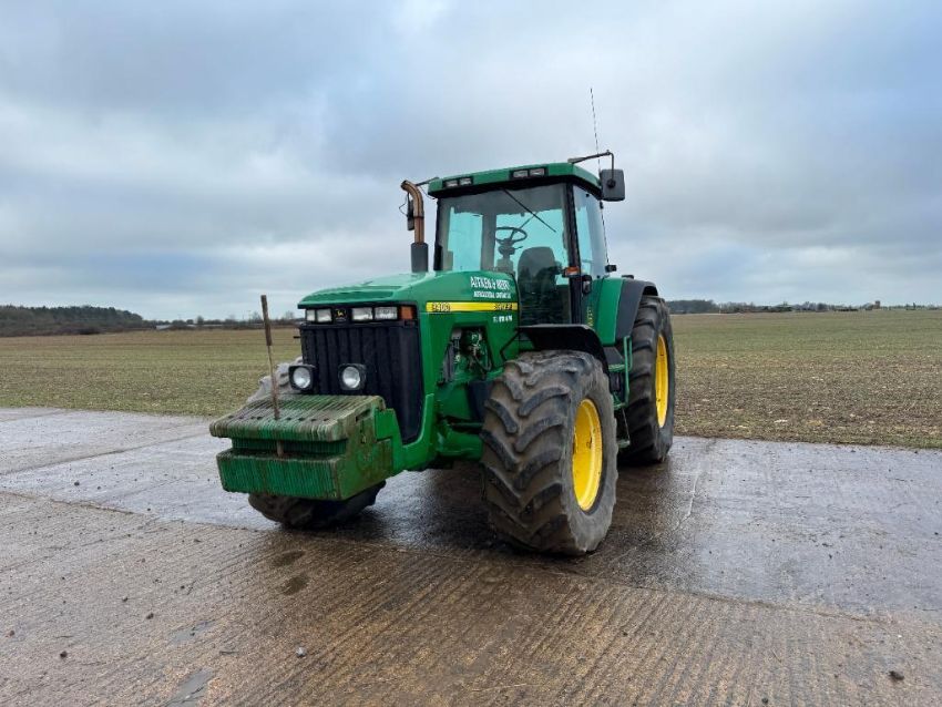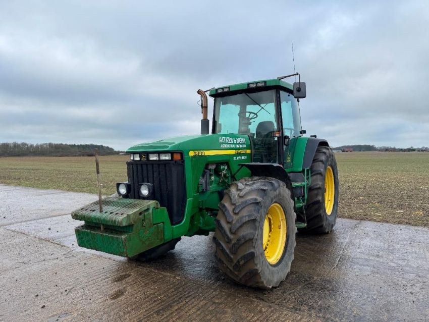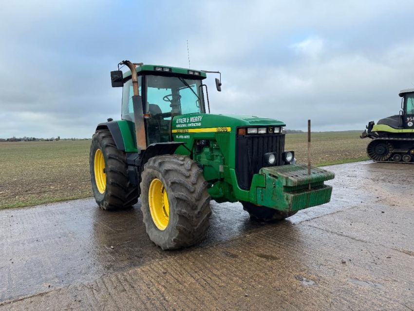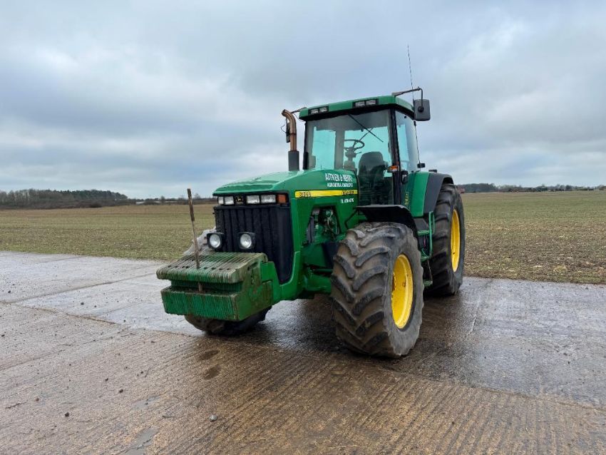 2000 John Deere 8400 4wd tractor, Powershift gearbox, 4No electric spools, 20No front wafer weights on Firestone 600/65R28 front and 710/70R38 rear wheels and tyres. Reg: W488 YFL. Hours: 7,970. Serial No: RW8400P02790