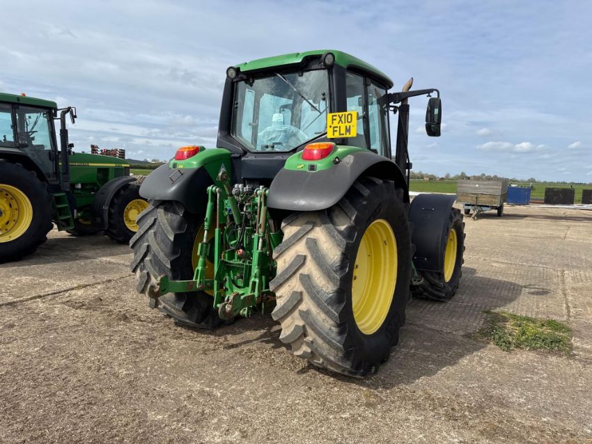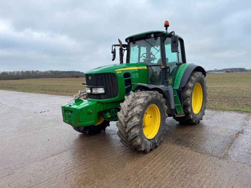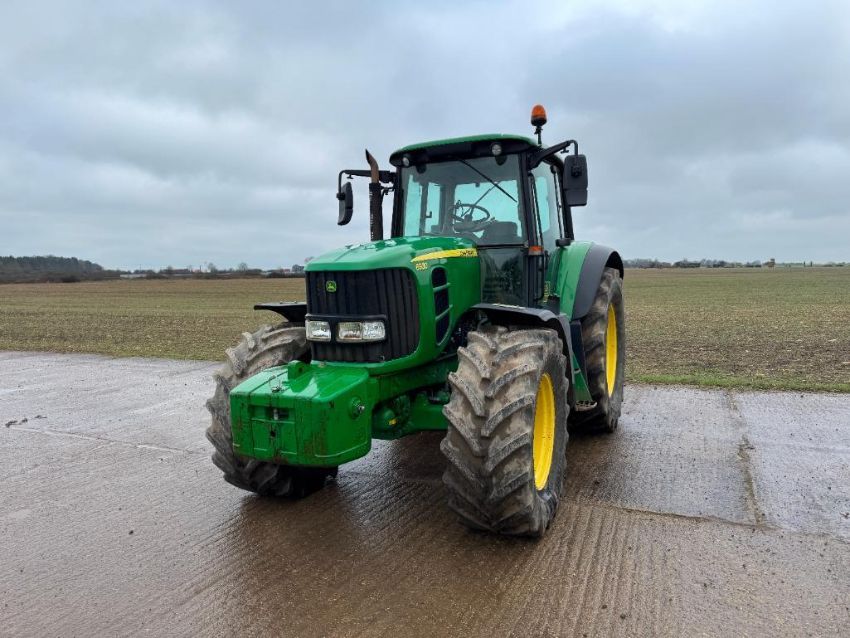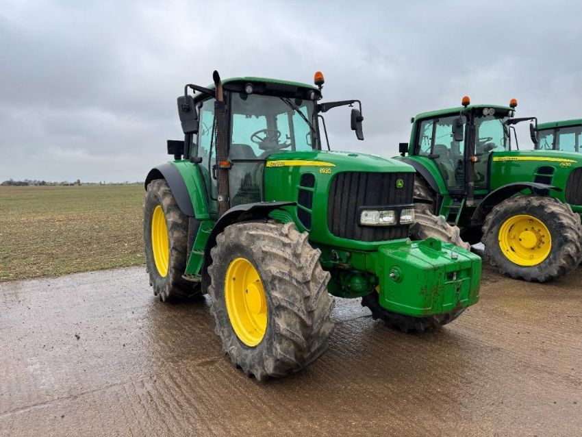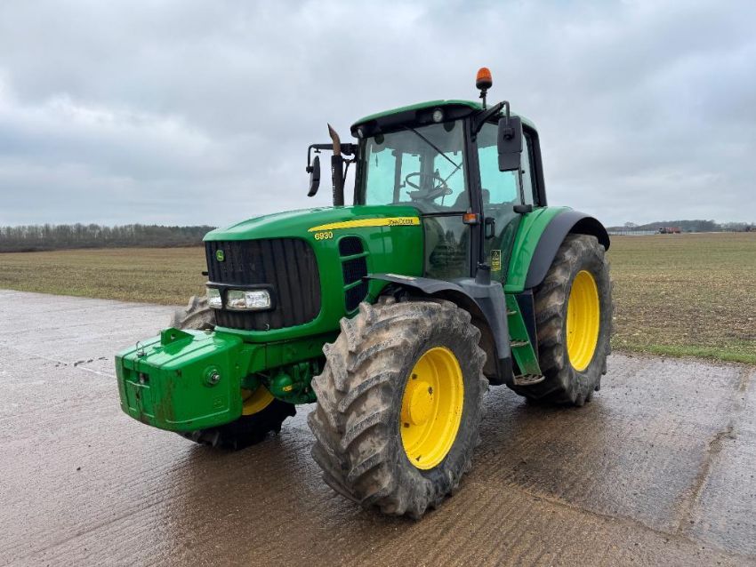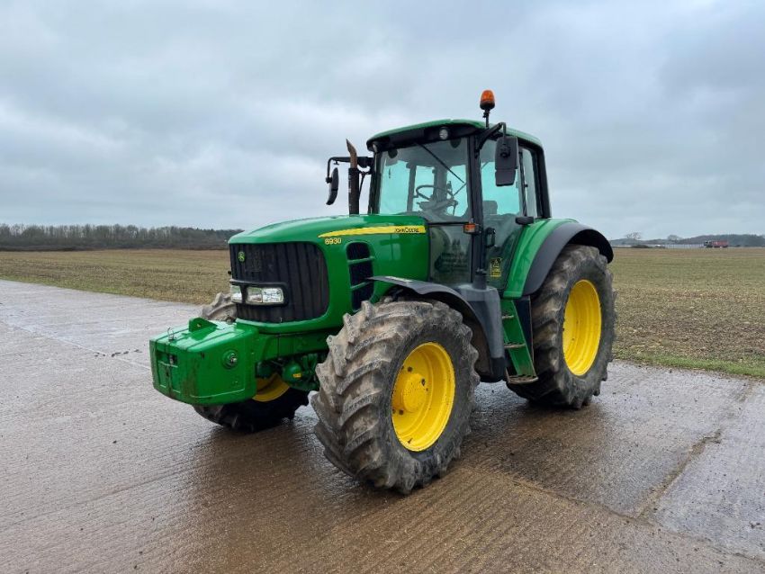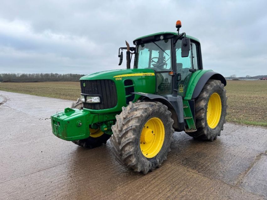 2010 John Deere 6930 40kph PowerQuad 4wd tractor, 3No manual spools, front suspension, pick up hitch with John Deere 900kg front weight block on BKT 540/65R28 front and 650/65R38 rear wheels and tyres. Datatag registered. Reg: FX10 FLM. Hours: 8,564. Serial No: L06930G643782