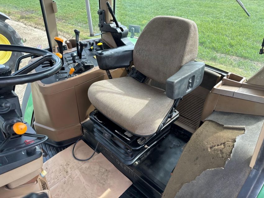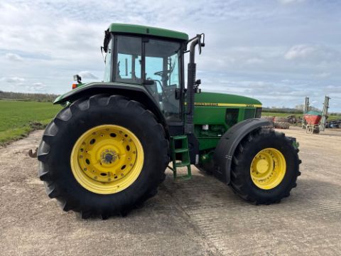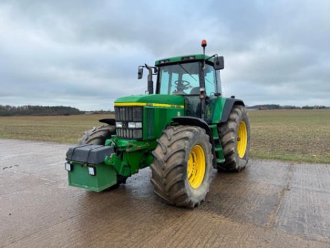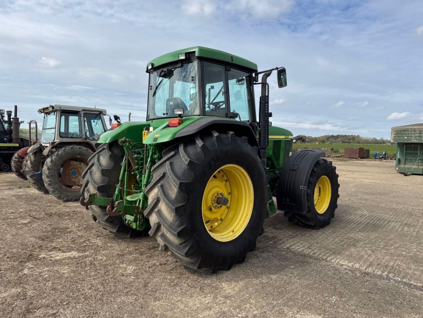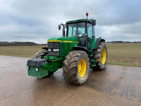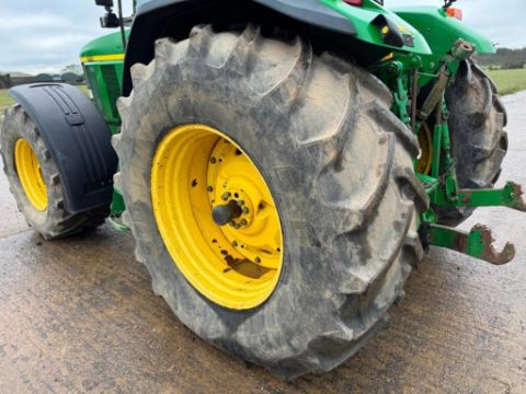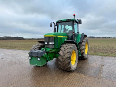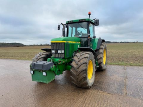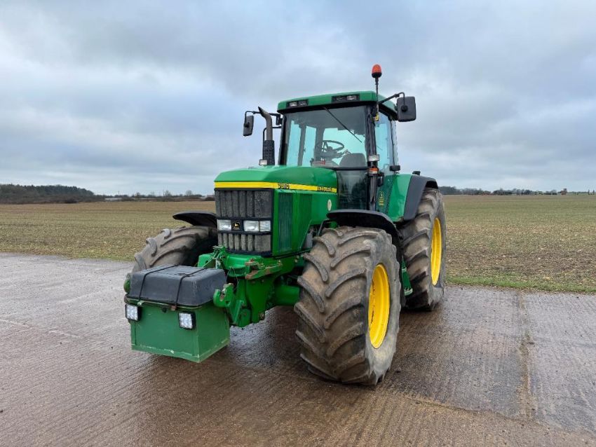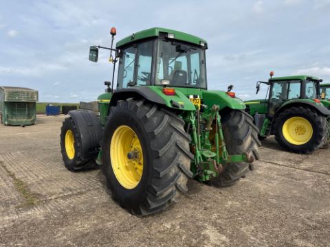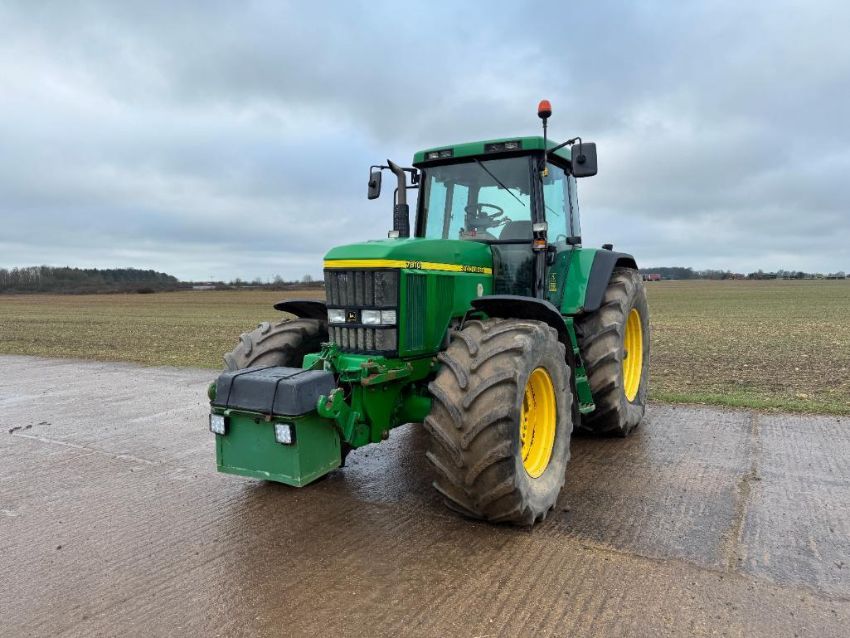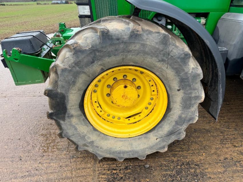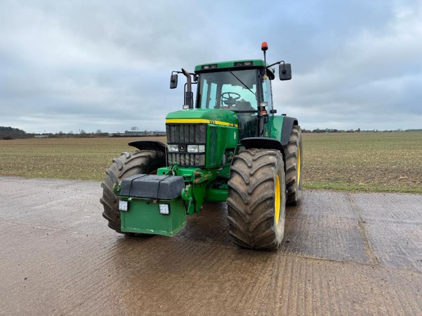 2002 John Deere 7810 40kph PowerQuad 4wd tractor, 3No manual spools, Sauter front linkage, front suspension on Firestone 600/65R28 front and BKT 710/70R38 rear wheels and tyres with front toolbox. Reg: FY02 YBM. Hours: 8,691. Serial No: RW7810R076783