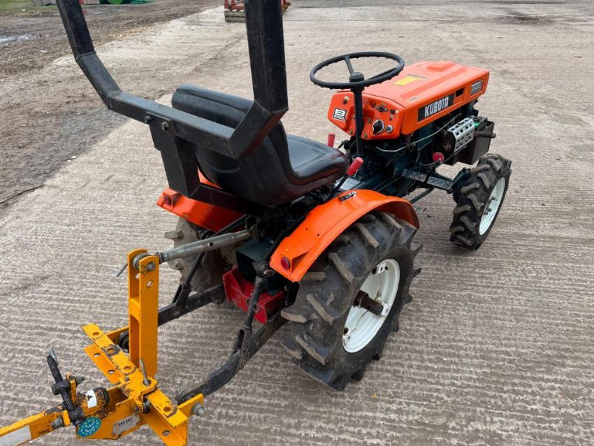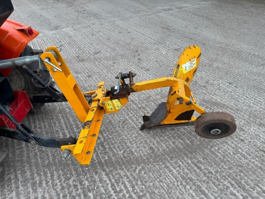 1977 Kubota B6000 4wd garden tractor with roll bar on Southsun 5.00-12 front and 7.0-14 rear wheels and tyres with rear linkage and PTO sold with Deleks single furrow adjustable offset plough