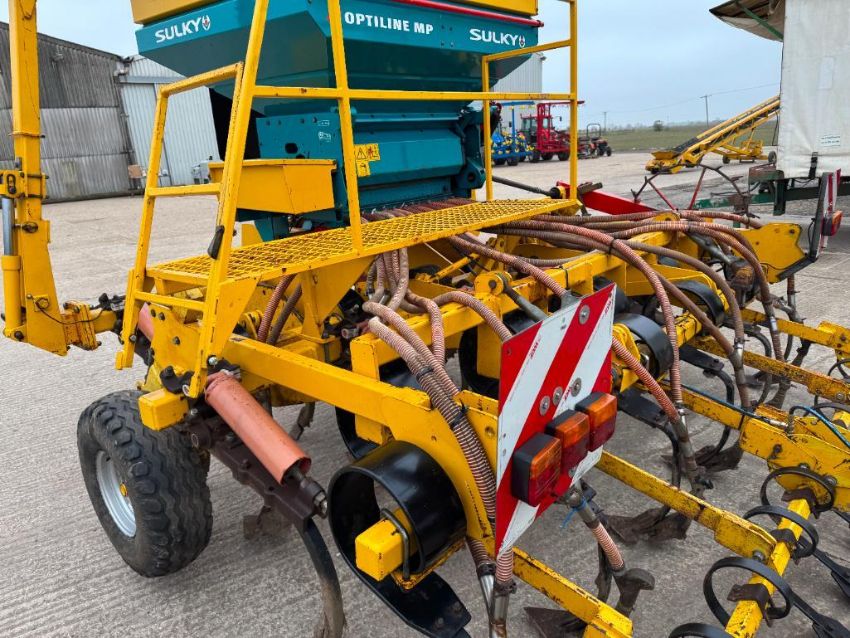 2008 Claydon SR Optiline 3.45m drill with Sulky MP hopper, bout, pre-em and tramline markers, rear paddles and following harrow with electric rate control. Serial No: PV02103.