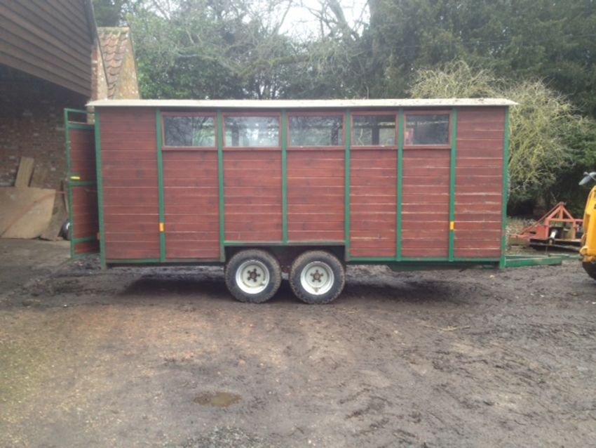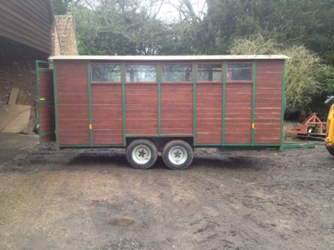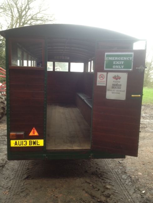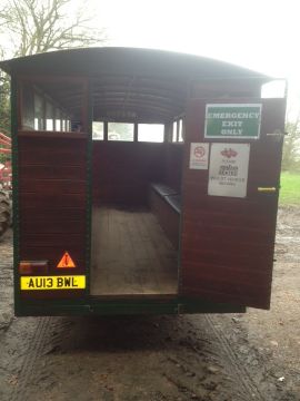1995 Agricultural Cart for Transporting Workers. Metal framework, timber clad with windows. Wooden bench seats for 18-20 workers. Good all round condition. Height 6ft 7in. Width 6ft 7in. Length 16.5ft. Has been used as a beater's cart. Sold as seen. Location Diss, Norfolk