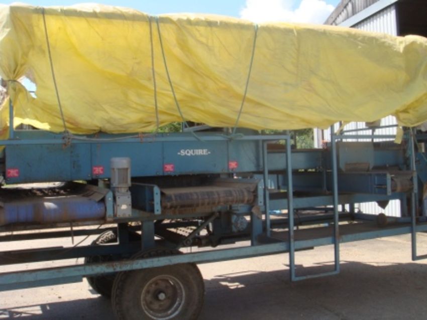 Squire Potato Grader. 14ft x 8ft. Approximately 1986. Very good condition, barn stored. 5 tonne hopper. Variable coils. Variable motor. Three phase electric. Location Huntingdon, Cambridgeshire.