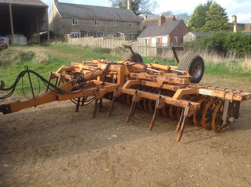 Simba Press with Leading Tines. Nearly all new bearings last year, cast wheels, leading tines, main ram new piston and re seal last year, rear draw bar with pipes and lights. Good for age. Location Northamptonshire