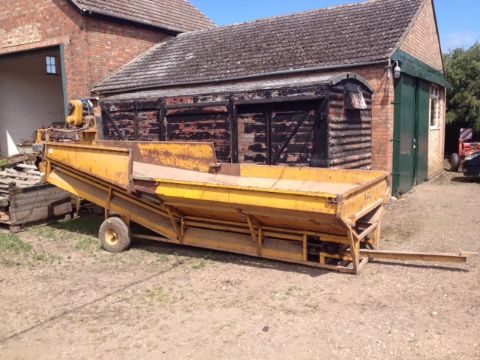 Ramsey Boat Hooper. In working order. Three droppable sides for emptying. Single phase electric. Dimensions of belt: 70cm x 520cm. Width where trailor can tip 230cm. Selection of sprockets supplied to alter belt speed. Location Whittlesey, Cambridgeshire.