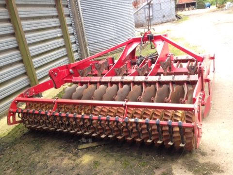2011 3m Tulip Vario 300XL. Multidisc (marketed by Teagle) one pass, 3m wide tractor linkage mounted cultivator. Done little work with fully retractable legs on hydraulic rams. Front cutaway rubber mounted angled discs 540mm diameter followed by 6 winged 850mm adjustable height legs with Solo shin pieces, rear discs as front 550mm diameter. Guttler roller rear packer 500mm type on pin and hole height adjusted arms, steel side soil deflector plate (adjustable on offside). Accumulator pressure pack on tine legs. Top spec machine with all good paint etc. Location Barkby Thorpe, Leicestershire.