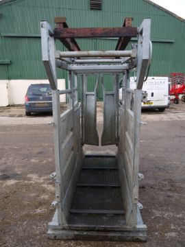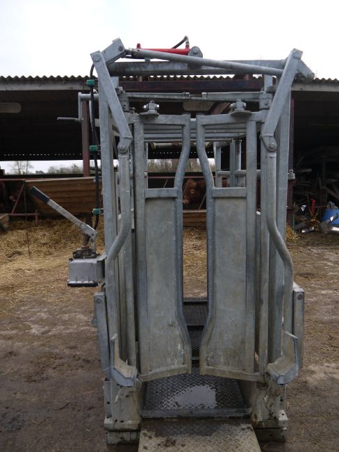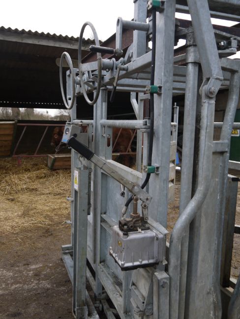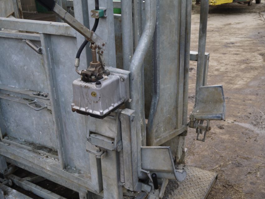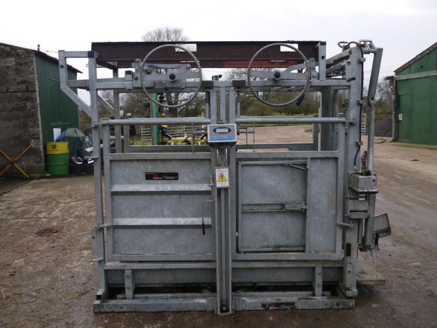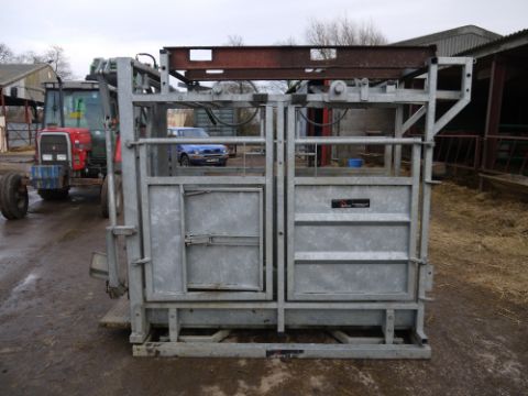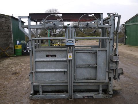 Bateman Cattle Crush with weigher (salter) and hydraulic neck scoop. Tamar crush and salter weigher. In very good condition with farm made lifting brackets. Electric weigh head. Location Cambridge, Cambridgeshire.