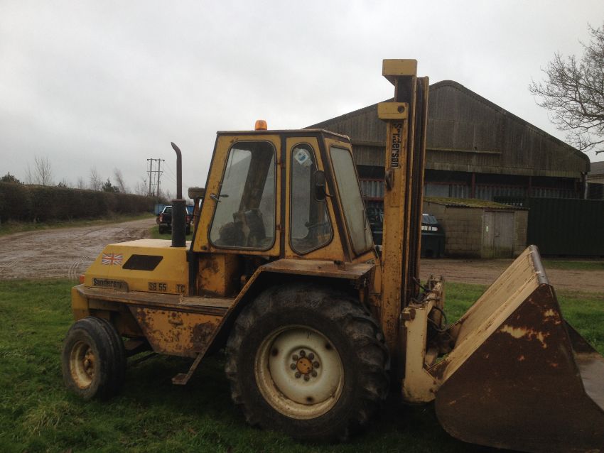 Sanderson SB55 Rough Terrain Forklift (1978), Reg: YVG 784S, Serial no. 11012389, 2WD, Front Tyres 16.9 R28, Rears 9.0 R16, Comes with Pallet Tines, This lot is not Sold with Bucket - Location - Holt, Norfolk