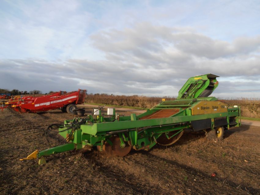 Standen Status 1750 potato harvester with a 45mm main web dolman rollers including spreading web elevator. Steering Axle. Adjustable drawbar