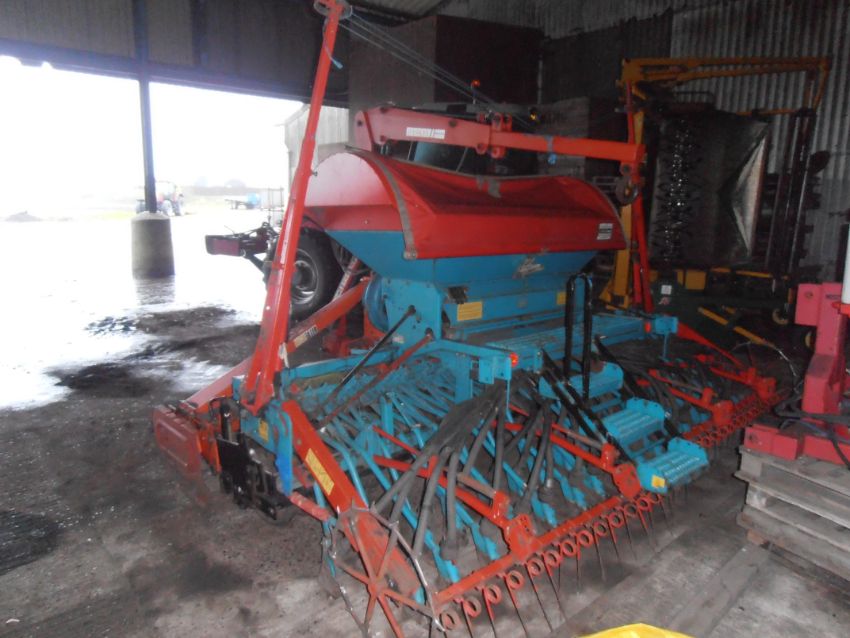 Reco Sulky SP1 4m Pneumatic Drill c/w Suffolk coulters, Electric Fan, c/w 4M Reco Tiller DM4000 Power Harrow with flexicoil roller and quick release tines, Askell bag hoist