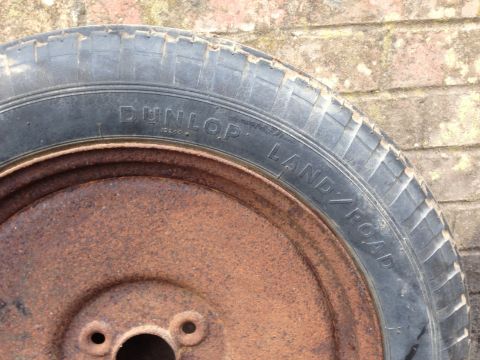 PR Three Stud Steel Wheels on Dunlop Land/ Road 29 x 5 Tyres. Location Sutton Bridge, Lincolnshire.