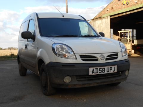 | 2008 NISSAN Kubistar SE Van; DCI 75 Engine, electric windows, 5 speed manual, radio & CD player, diesel, white, front fog lights. Reg No AD58 UPJ. Steel wheels on 165/70 R14 tyres. 58,796 miles. |