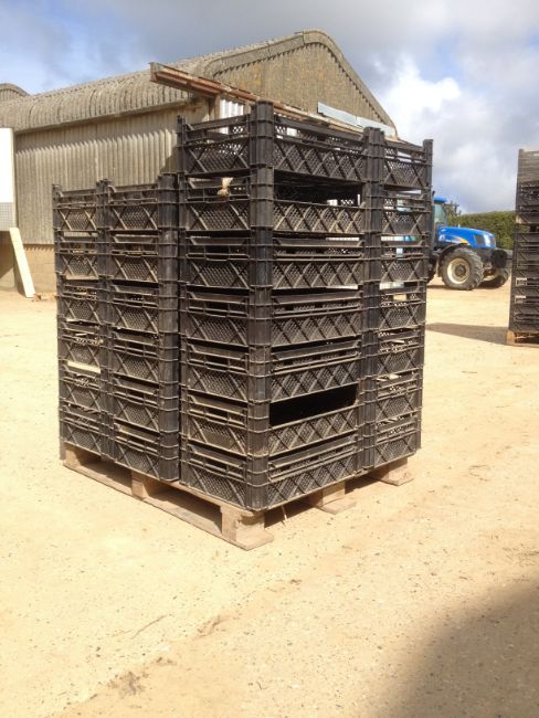100 Interlocking Stacking Basket Trays, 50 trays per standard 40" x 48" pallet, Tray size approx 20 cm high x 40 cm wide and 60 cm long - Location, Kings Lynn, Norfolk
