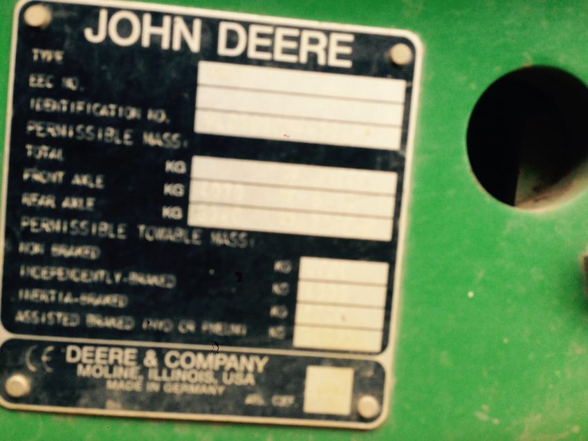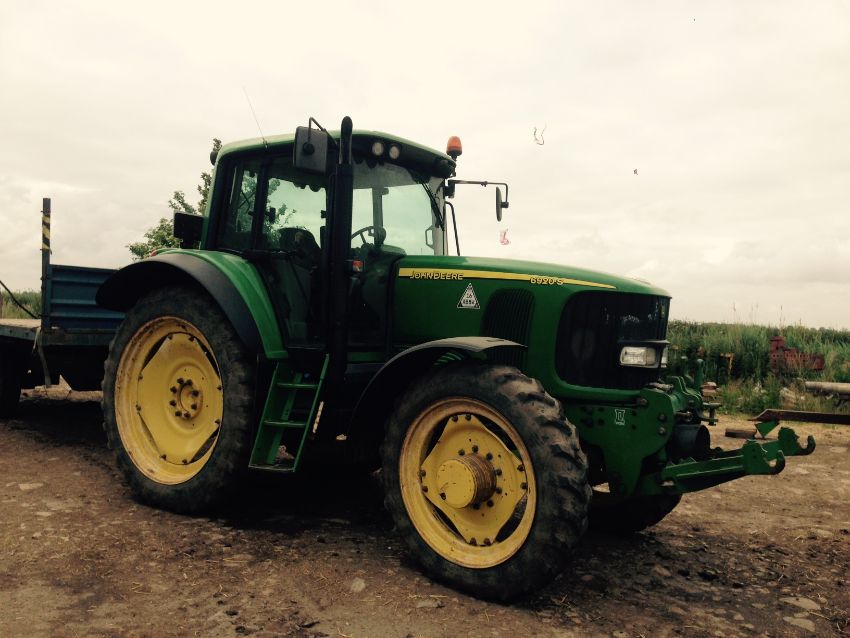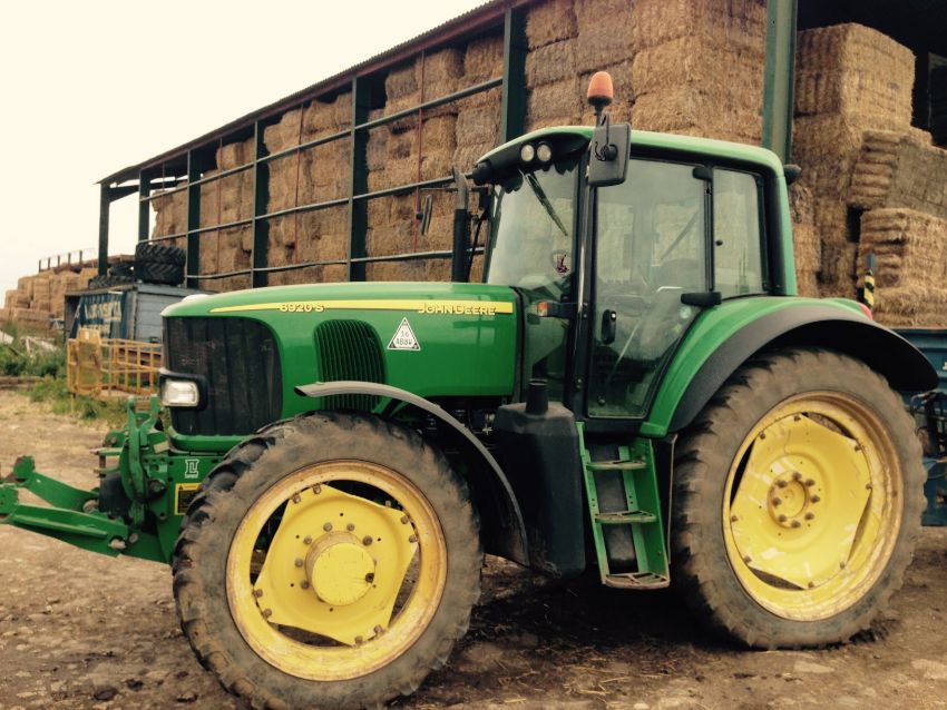 2005 John Deere 6920S Tractor 50k Power Quad c/w front linkage and pto. Air brakes. Reg: FX05 HDO Hours: 7222 F: 11.2 R36 (270/95 R 36) R: 13.6 48. Owned since new. c/w Tyres: Pair F: 540/65 R28 25% worn and Pair R:650/65 R38 20% worn. Location Bourne, Lincolnshire