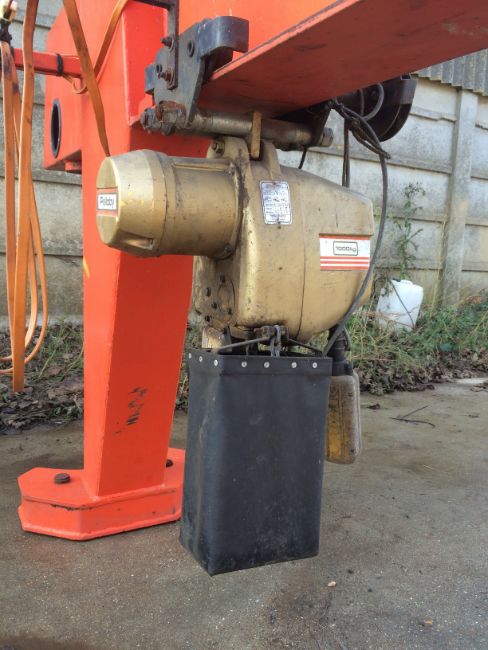 1995 Pelloby 1 Tonne Jib Crane. 4m reach, manuakl turn and cross travel. Serial number: c23668. Location Kings Lynn, Norfolk