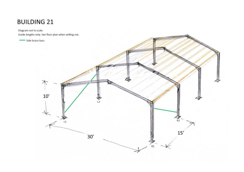Steel framed building 45ft long x 30 ft wide x 10 ft @ eaves 12 .5 deg roof pitch