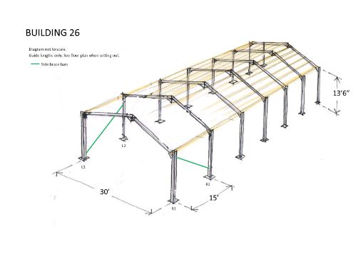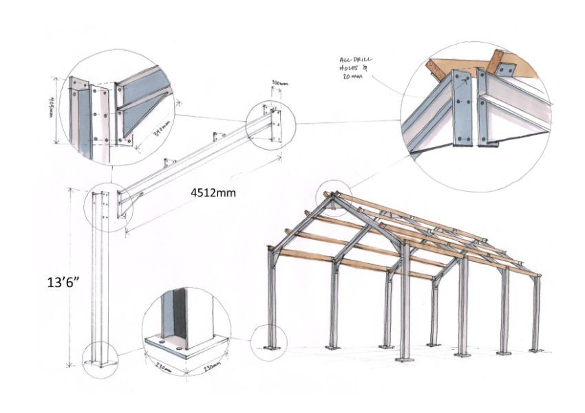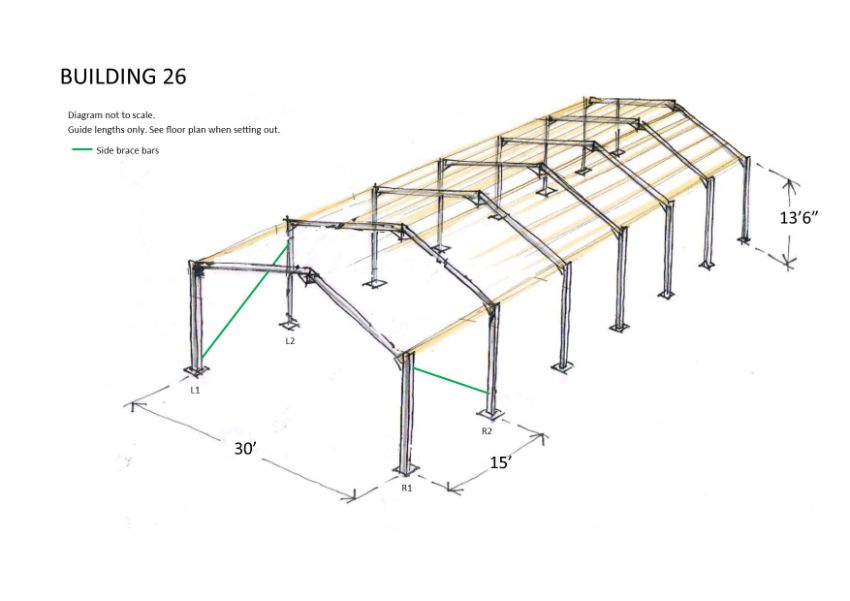 Steel framed building 90ft long x 30 ft wide x 13.5 ft @ eaves 12 .5 deg roof pitch