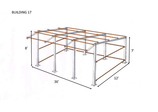 Steel framed stable/mono slope 36ftlong x 12ft wide x 8ft @front x7ft @ back x 3 ft canopy(h1236)