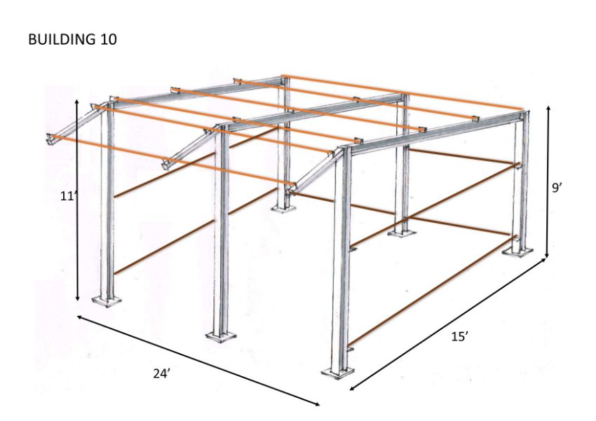 Steel framed stable/mono slope 24ftlong x 15ft wide x11ft @front x9ft @ back x 3 ft canopy (b1524)