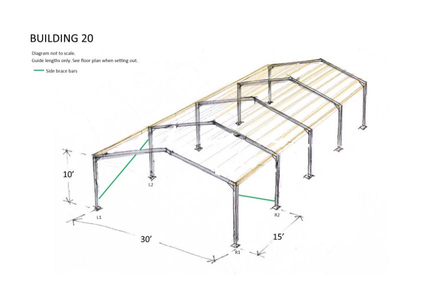 Steel framed building 60ft long x 30 ft wide x 10 ft @ eaves 12 .5 deg roof pitch purlins spaced to take fibre cement