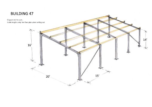 Steel framed building mono slope 60ft long x 20ft wide x 16ft @ front x 14ft @ back 6 deg roof pitch
