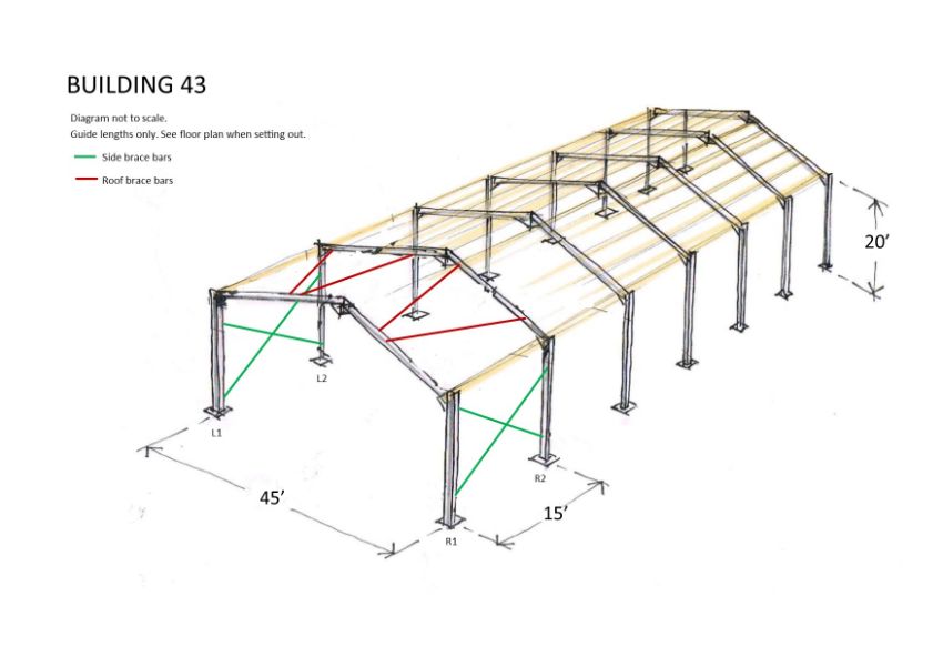 6 no 15 ft bays heavy duty frame (could be 120 ft long on 20 ft bays)