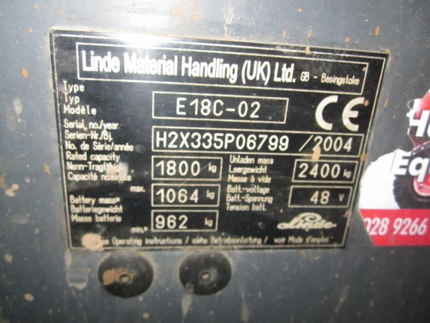 2004 Linde GP18 E18C - 02 Electric Forklift with Charger, 5972 hrs, Serial No. H2X335PO6799