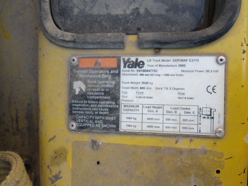 2005, Yale Diesel Power Forklift, Serial No. B810B04775C, 4550 hrs