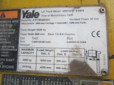 1998 Yale Forklift, serial no. E177B20436V,