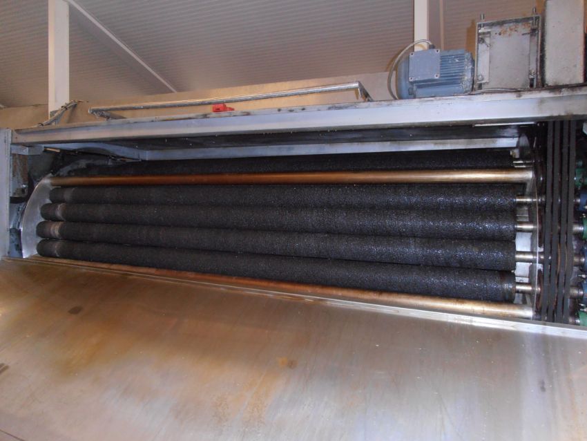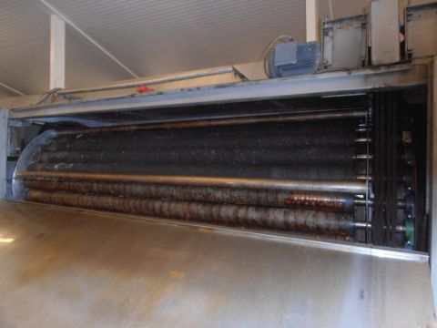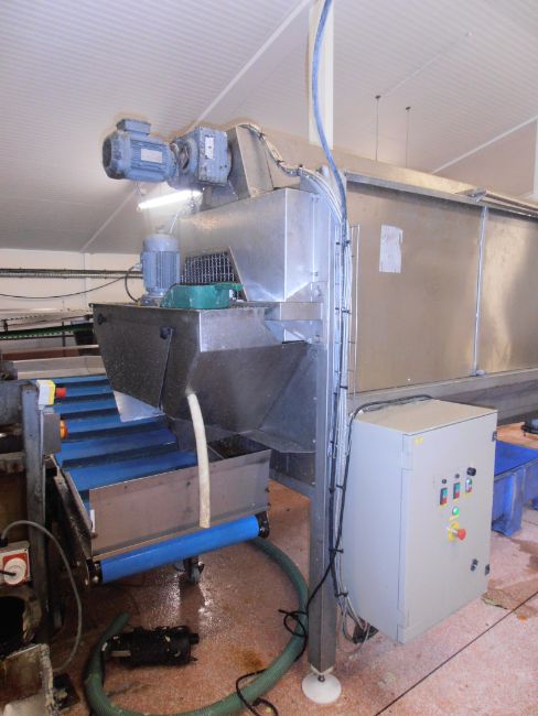 Stainless Steel Potato/Swede Peeler, length 3.35m (11'), with Screw auger, some rollers need carbon replaced.