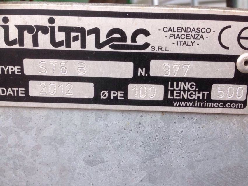 2012 Irrimec ST6 B 100-500 Irrigation Reel. Very good condition. Little work. 500m c/w gun & trolley. Dosidis computer. Stored undercover. Serial No. 977. Location Atherstone, Warwickshire