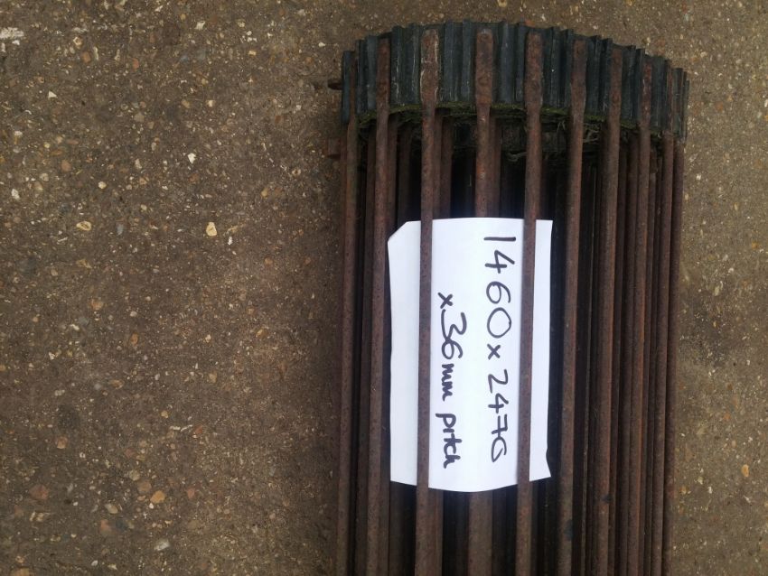 Quantity of used webs for Grimme harvester 3 long webs: 1460 x 6970 x 50mm pitch, 1460 x 6970 x 45mm pitch and 1460 x 2470 x 36mm. ( Broken Joiner) 3 short webs: 1460 x 2470 x 36mm pitch, 1460 x 2470 x 40mm pitch & 1460 x 2300 x 28mm pitch. Location: Ely Cambridgeshire.