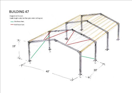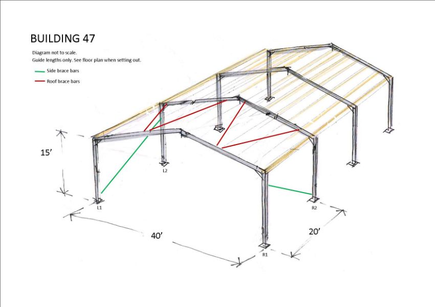 Apex Steel Framework on 20ft bays, frames, bolts and braces.