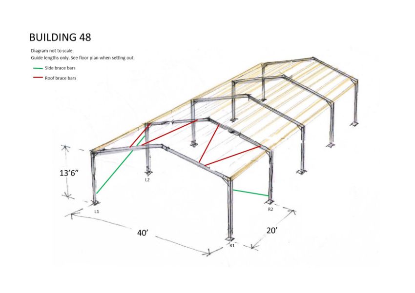 Apex Steel Framework on 20ft bays, frames, bolts and braces.