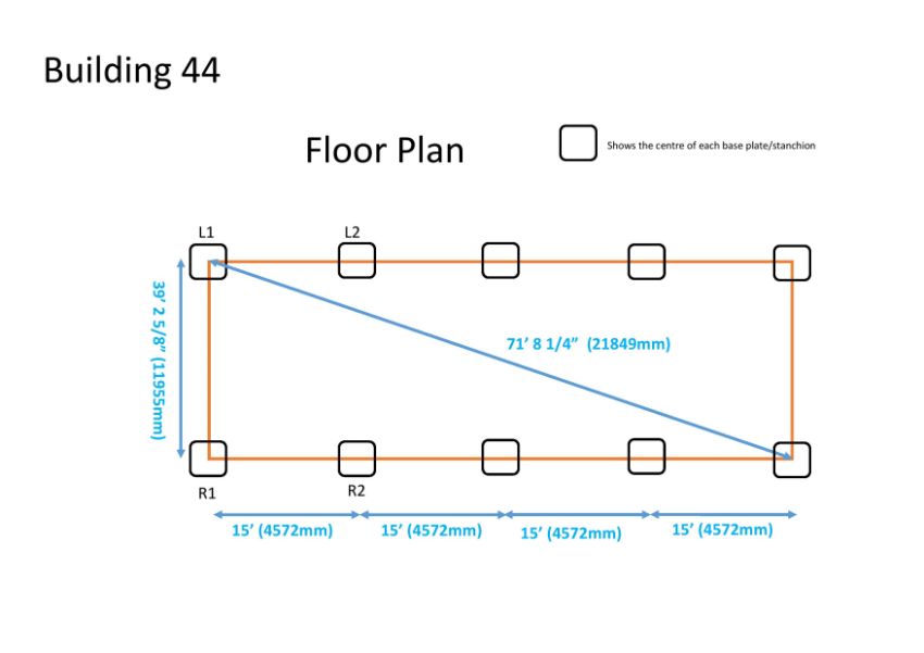 60ft long x 40ft wide x 15ft @ eaves.