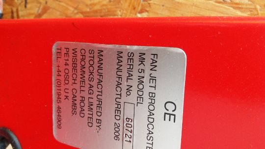 Stocks Fan Jet Mark 5 (2006) Serial Number: 60721 Fan Jet Spreader and quad mounting bracket Location: Fen Drayton Cambridgeshire