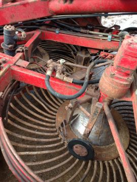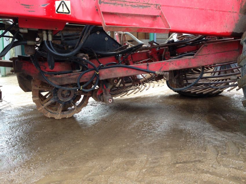 TIM M111 (1999) 3 Row Tanker Serial Number: SH1200 Variable Speed Turbines Variable rear cleaning web and tank elevator. Reverse turbines. Stabilizer disc, rear axle steering. Pressure kit for oppel wheels, auto steer/depth control. Flotation tyres, hydraulic toplink for topper. Unload on move tank. New Oppel wheels. Location: North Walsham, Norfolk