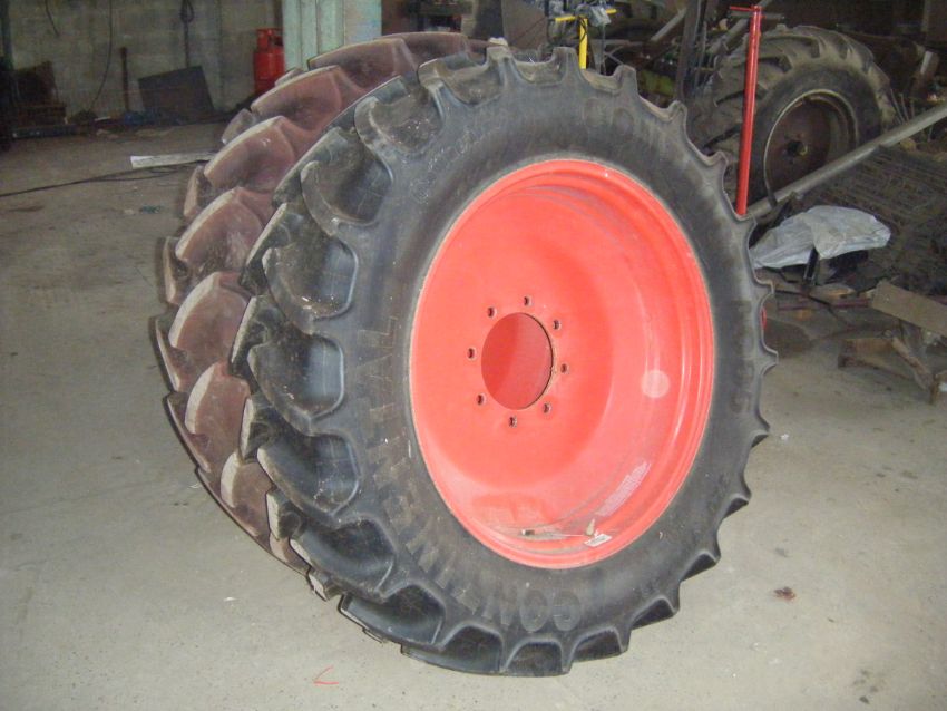 Set of Stocks row crop wheels to fit Fendt 716 or similar, fronts Continental 320/90 R32, rears Mitas 340/85 R48, full set 90% tread. Location: Retford, Nottinghamshire.