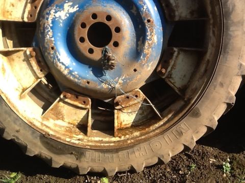 Michelin Rear wheels. 230/95 R48. And Taurus front row crop wheels. 9.5 R32. Both Ford New Holland centres. Location Acle, Norfolk.