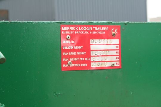 2015 Merrick Loggin Trailer 33 ft Flat bed trailer Twin Axel Plywood floor. Serial No. 060115 Max Gross Weight 18290kg. Location Milton Keynes, Buckinghamshire