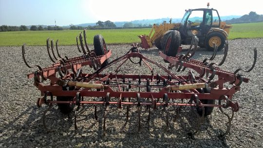 Kongsklide 5 Metre HYD Fold Vibra Master, 4 Adjustable Depth Wheels, 1 Tyre is different tread and size. Good Tines and Points some new, no weld or cracks, support bars are bent as photos show. Location Nr Market Drayton, Shropshire.