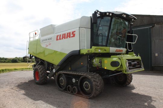 2010 Claas Lexion 600TT combine harvester with V1050 Autolevel header and trolley, straw chopper, 3D sieves, twin Laser Pilot, air compressor, reversing camera and printer. Reg No: FX10 KVV. Serial No: 38901172. Engine Hours: 2170. Rotor Hours: 1640