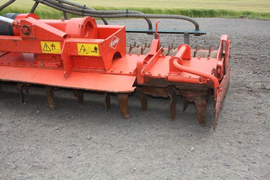 2005 Kuhn HR6003DR folding power harrow with clodboard and packer roller. Serial No: 62025 (NOTE: seeder in photos NOT included in sale)
