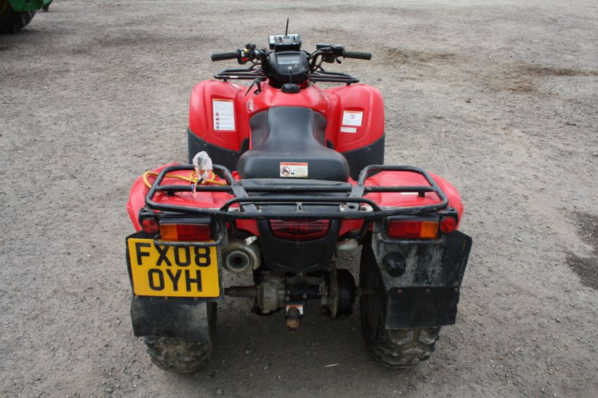 2008 Honda TRX420FM petrol ATV with road legal kit. Reg No: FX08 OYH. Hours: 479. Odometer: 3714 kms