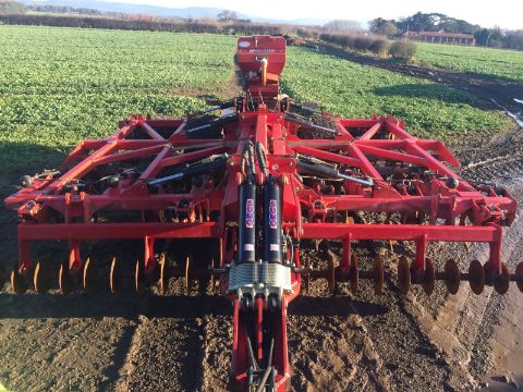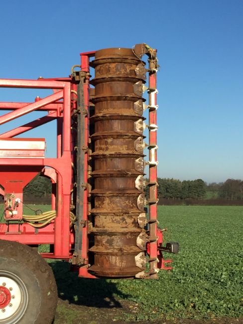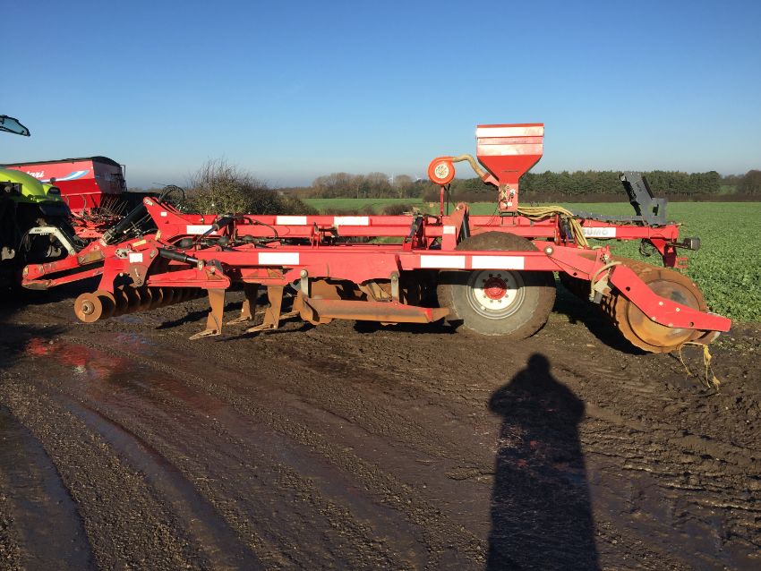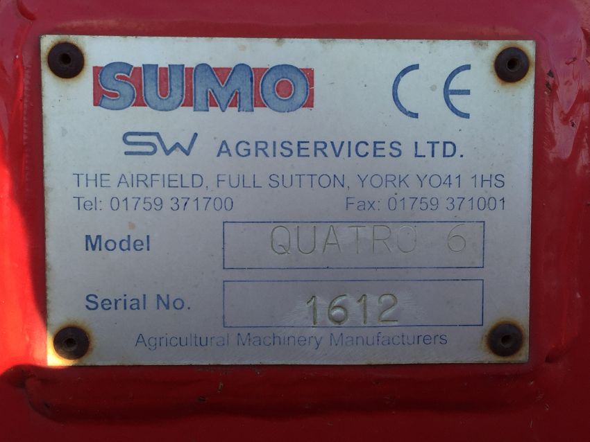 Sumo Quattro (2007). 6 metre working width, has been well looked after, has had disc bearings rubber, disc suspensionbushes, packer roller and bearings replaced over last two seasons. Fitted with a pair of new style multipackas with bolt-on ribs, (£7,500) July 2015. 12 soil loosening legs with single piece foot. Hydraulic reset legs. Extendable drawbar to rear with hydraulics and electrics. Serial No.: 1612. Location: Middlesbrough, North Yorkshire