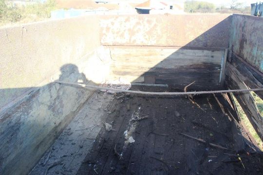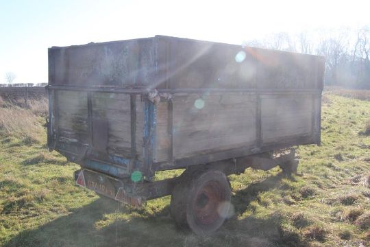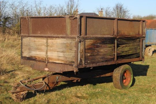 4.5t tipping trailer (1960s) Single axle tipping trailer, steel frame, steel and wooden sides with one side and floor rotten. Location: Lincoln, Lincolnshire