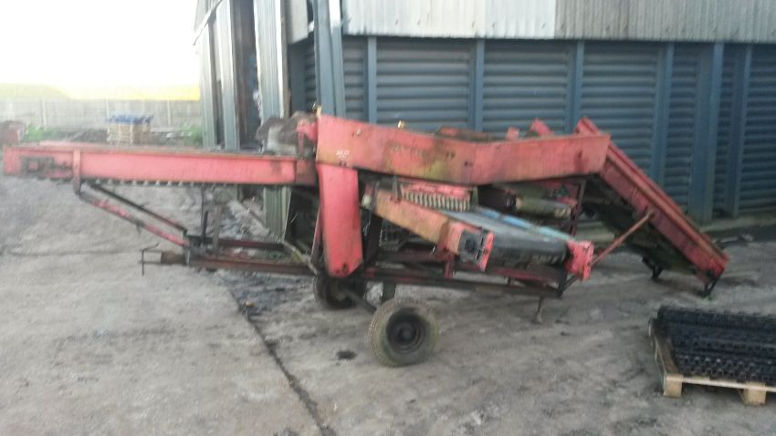 Tong 3ft screen grader. 2 screens, 2 cross conveyors, 3 phase, infeed elevatory roller pick off table. Location: Downham Market, Norfolk.