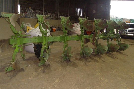 Dowdeswell plough. 09MA36/082 DF140MA 7FDD bodies and rear disc, hydraulic front furrow. Location: Cawston, Norfolk.