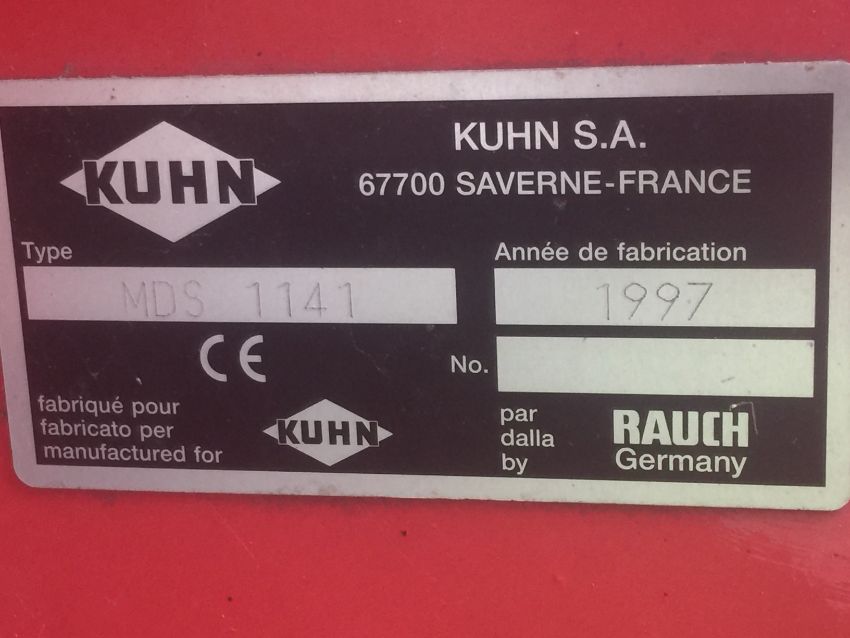 Kuhn MDS 1141 Fertiliser Spreader (1997). Good condition for age, discs and vanes in good condition. 24 metre spreader, individual hydraulic shut off for each disc, easy to set slider for application rate. Location: Middlesbrough, North Yorkshire