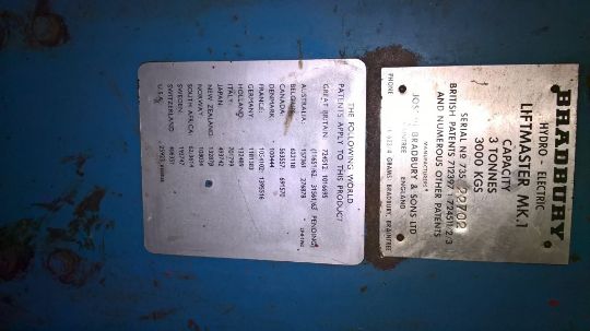 Bradbury Liftmaster Serial Number: 735/22702 Vehicle lifting table - last lifting inspection passed in 2015 Location: Peterborough, Cambridgeshire